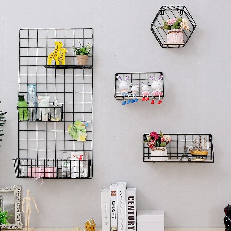 Web Pikify Grid Hanging Iron Basket Wall Mounted Decoration Innovative Flower Pot Shelf.